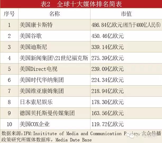 什么样的媒体集团是实力强大的?我们来看看世界十大传媒集团的实力和架构(见表2)。