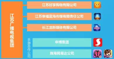 江苏广播电视集团在新媒体的布局方面主要体现在集团旗下的江苏好享购物有限公司、江苏幸福蓝海传媒有限责任公司以及长江龙新媒体有限公司。好享购专攻购物节目,其推出《好享购物》的移动端互动APP、幸福蓝海主要领域是影视产业并推出同名APP,而长江新媒体则是江苏卫视主力影视制作传播公司,以节目《最强大脑》试水制作同名手游,为日后在江苏卫视进军手游界打下基础。